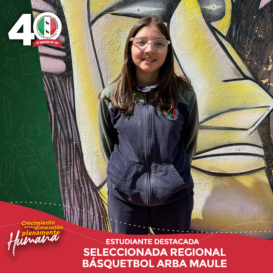 El Colegio Santiago Oñederra saluda y reconoce los logros deportivos de la estudiante Martina Pereira del curso 8°A quien pertenece a la selección regional de básquetbol ARBA Maule que disputa las eliminatorias federadas nacionales en la categoría sub 15 damas dirigidas por el Profesor Manuel Herrera Blanco ¡Felicitaciones! 🏀